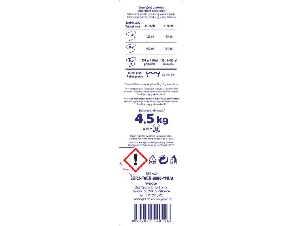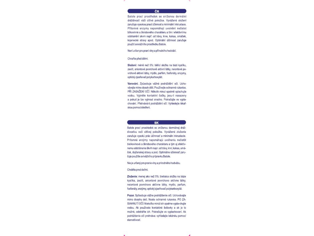 Kvalitní prací prášek českého výrobce, určený převážně na prádlo přicházející do styku s dětskou pokožkou, která je nejvíce vystavena rizikům podráždění a alergiím.