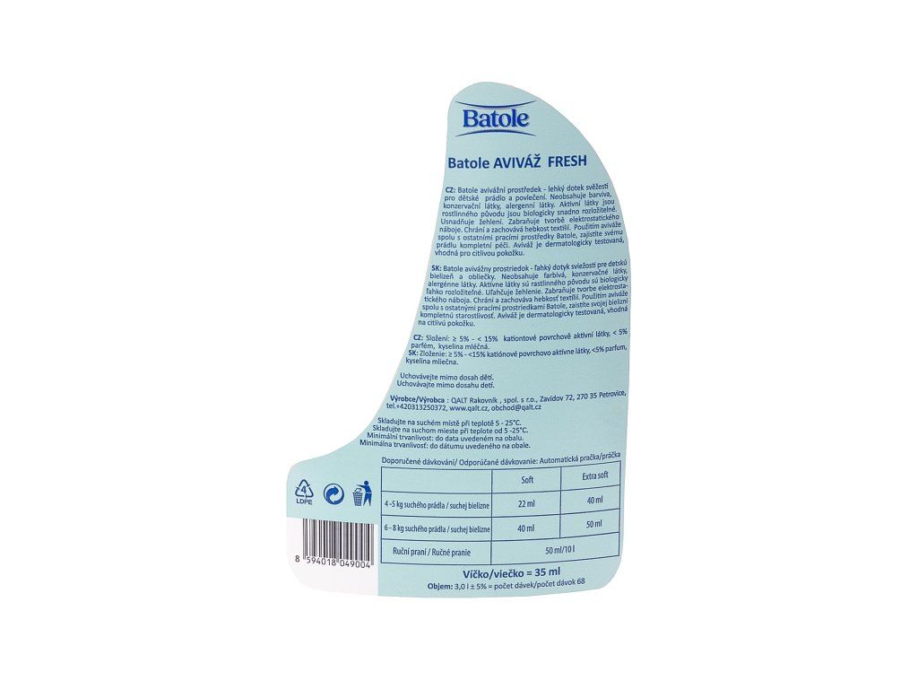 Nová aviváž Batole Fresh zanechává prádlo příjemně měkké na dotek a dodává mu čistou, lehkou vůni. Díky své účinnosti stačí malé množství pro dosažení perfektního výsledku.