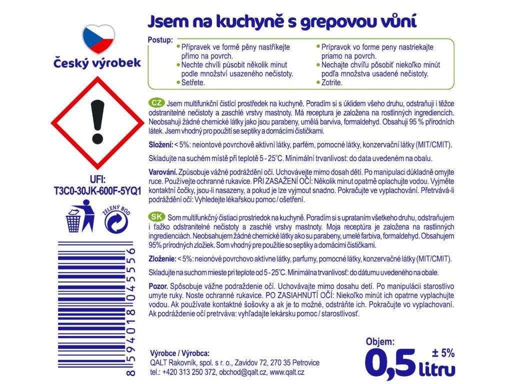Jsem multifunkční čistící prostředek na kuchyně.