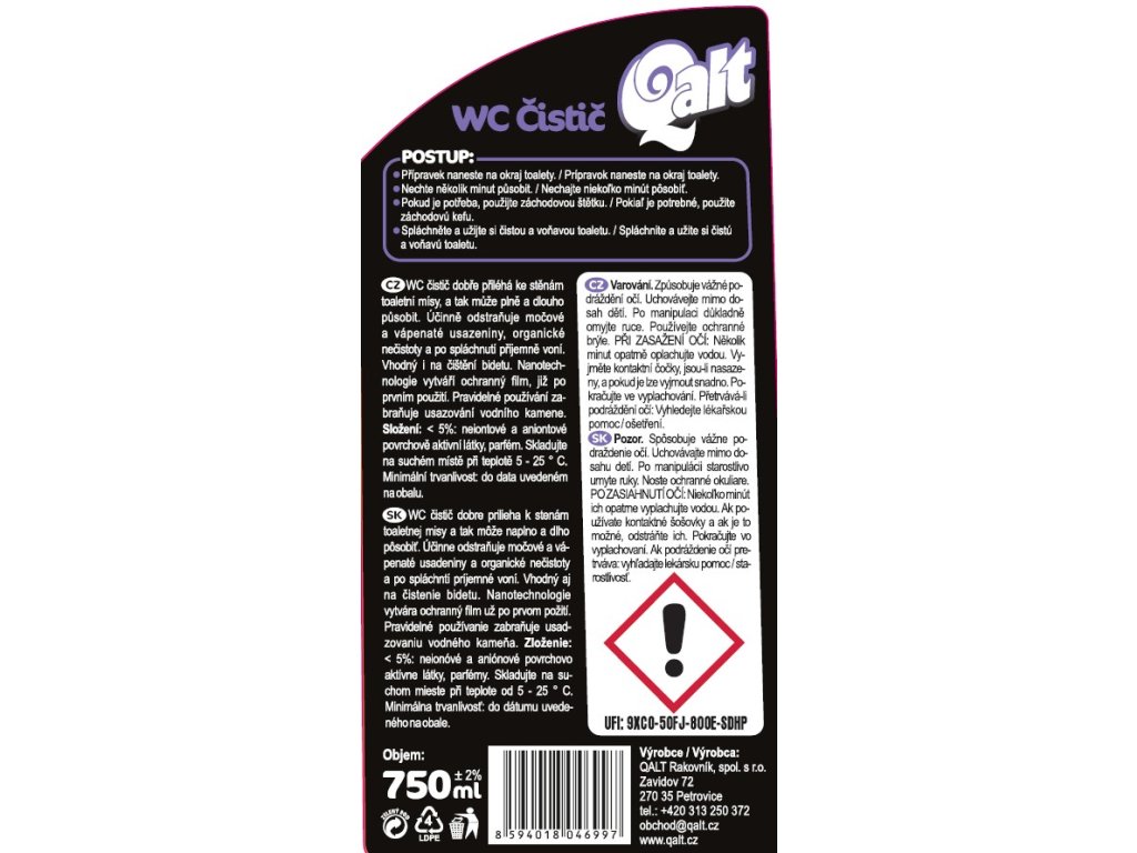WC čistič dobře přiléhá ke stěnám toaletní mísy, a tak může plně a dlouho působit. Účinně odstraňuje močové a vápenaté usazeniny, organické nečistoty a po spláchnutí příjemně voní. Vhodný i na čištění bidetu. Nanotechnologie vytváří ochranný film, již po prvním použití. Pravidelné používání zabraňuje usazování vodního kamene.